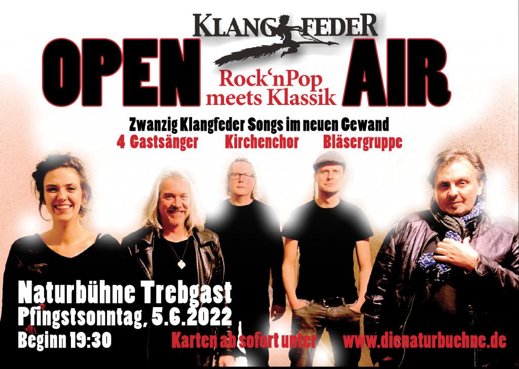 5. Juni umd 20 Uhr auf der Naturbühne in Trebgast. 20 Klangfeder Songs in neuem Gewand, zusammen